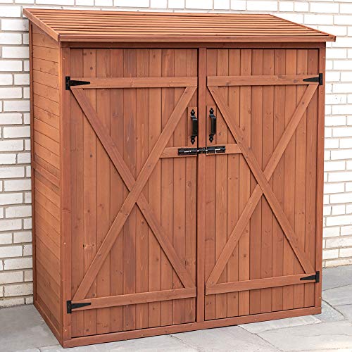Leisure Season Mss6602 Medium Storage Shed Brown Outdoor Garden Tool Organizer Box Lockable Waterproof Cedar Cabinet With Shelves And Wooden